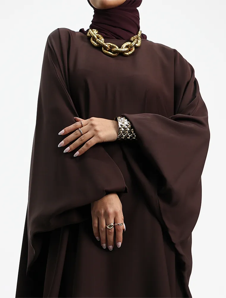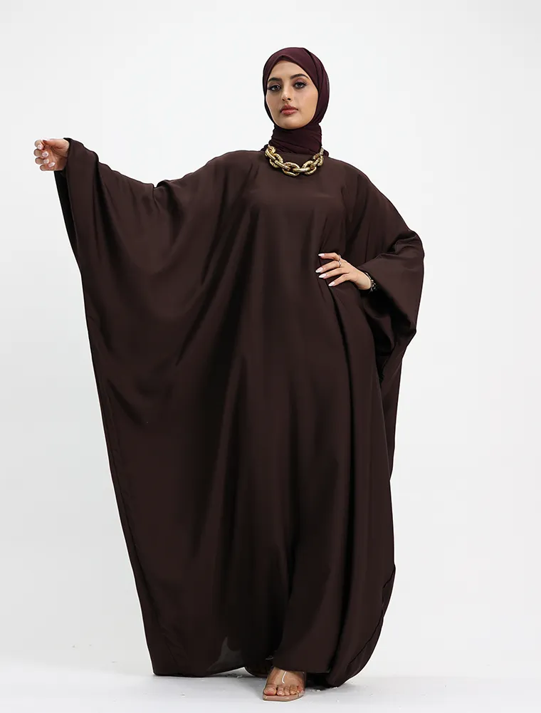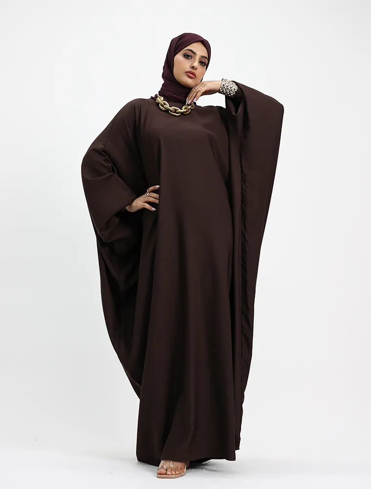 Featuring a round neckline, this batwing abaya although simple will meet your expectations for a everyday wear. This dress features a loose cut fitting and elasticated cuffs.