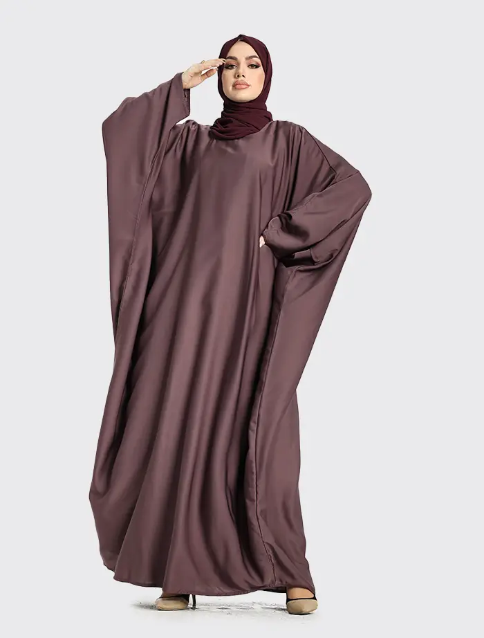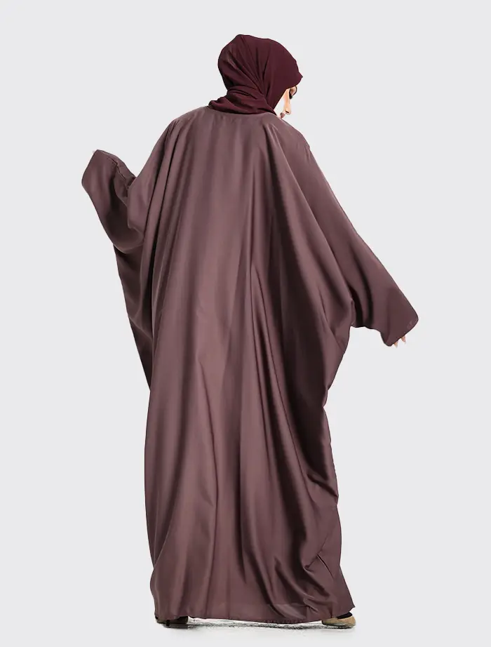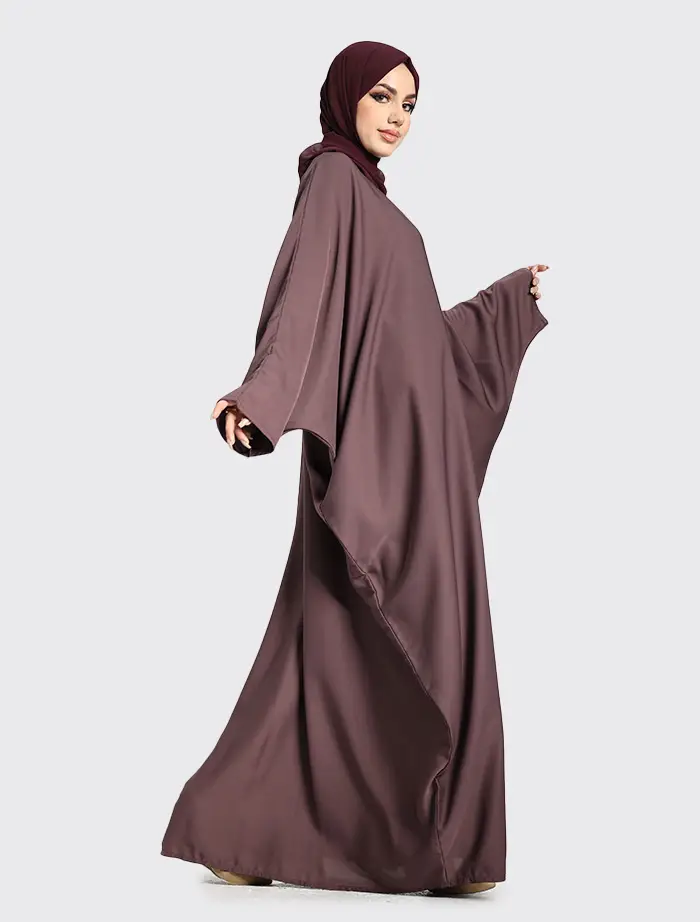 Featuring a round neckline, this abaya although simple will meet your expectations for your everyday comfort. This dress features a loose batwing cut fitting with armholes which ends at the side seam of the dress.