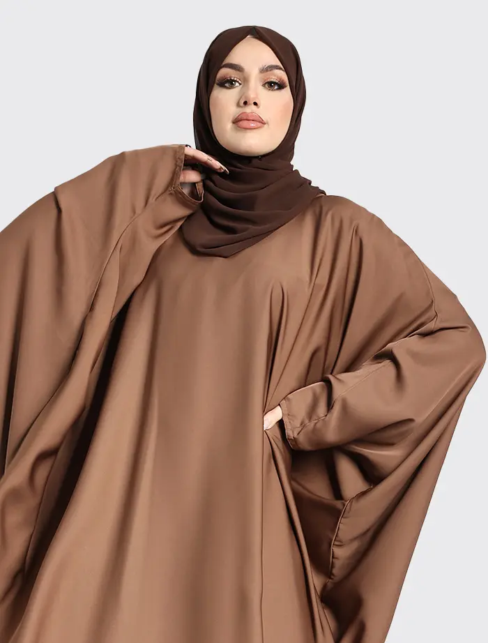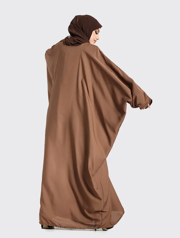 Featuring a round neckline, this abaya although simple will meet your expectations for your everyday comfort. This dress features a loose batwing cut fitting with armholes which ends at the side seam of the dress.