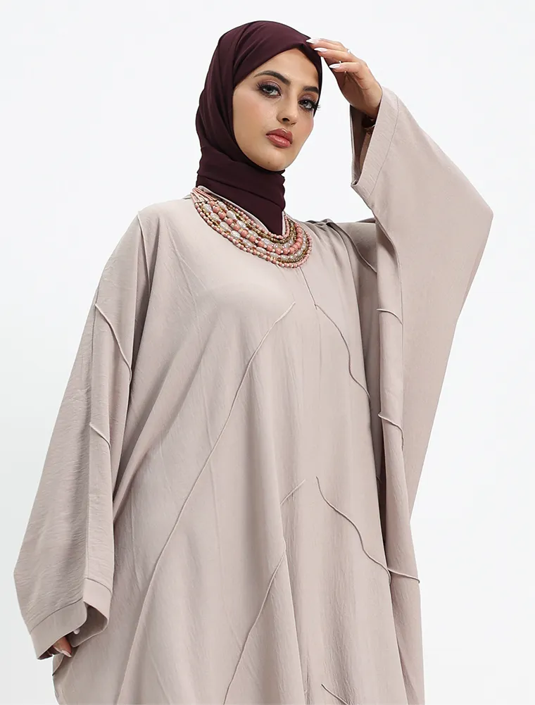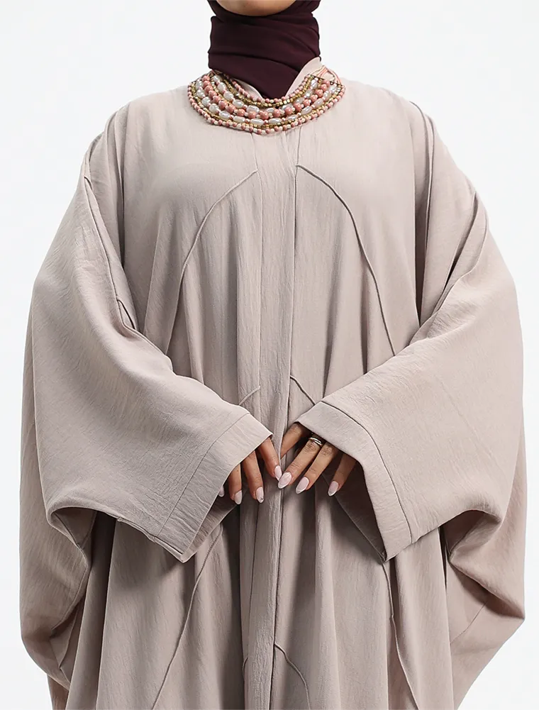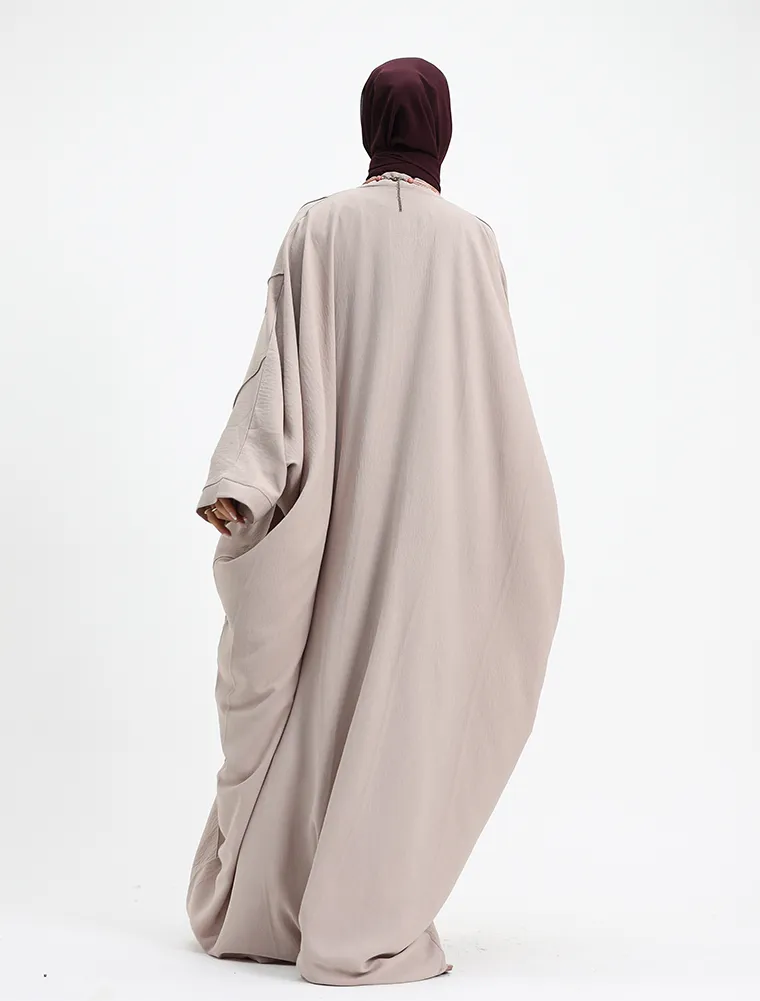 Crafted from a breathable linen-feel fabric, this plain batwing abaya offers effortless elegance with everyday comfort. Designed with a relaxed batwing silhouette, it drapes beautifully while allowing ease of movement.