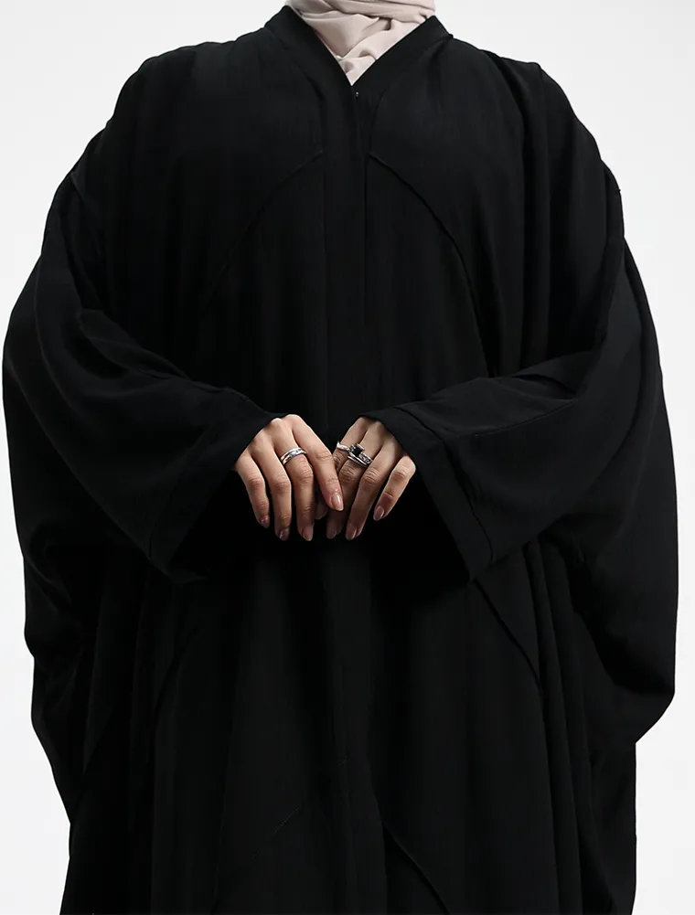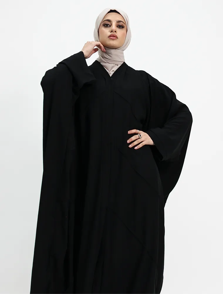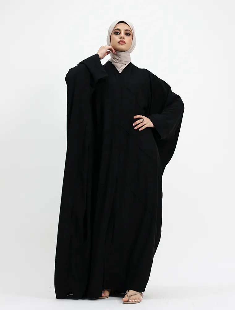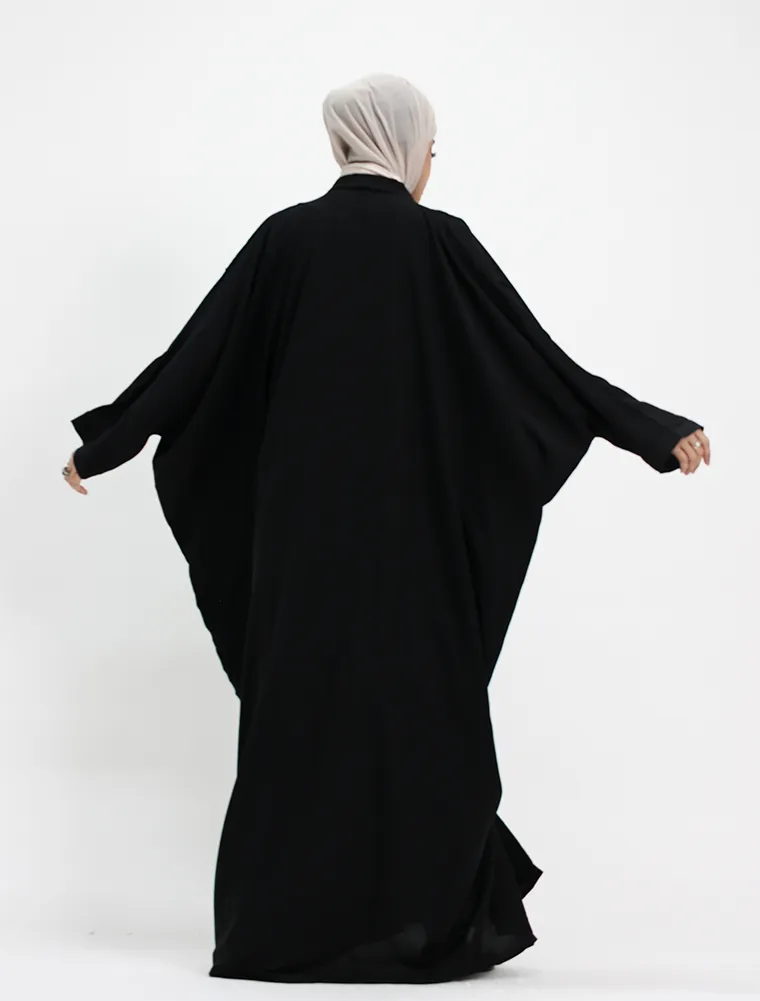 Crafted from a breathable linen-feel fabric, this plain batwing abaya offers effortless elegance with everyday comfort. Designed with a relaxed batwing silhouette, it drapes beautifully while allowing ease of movement.
