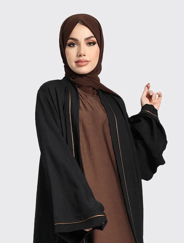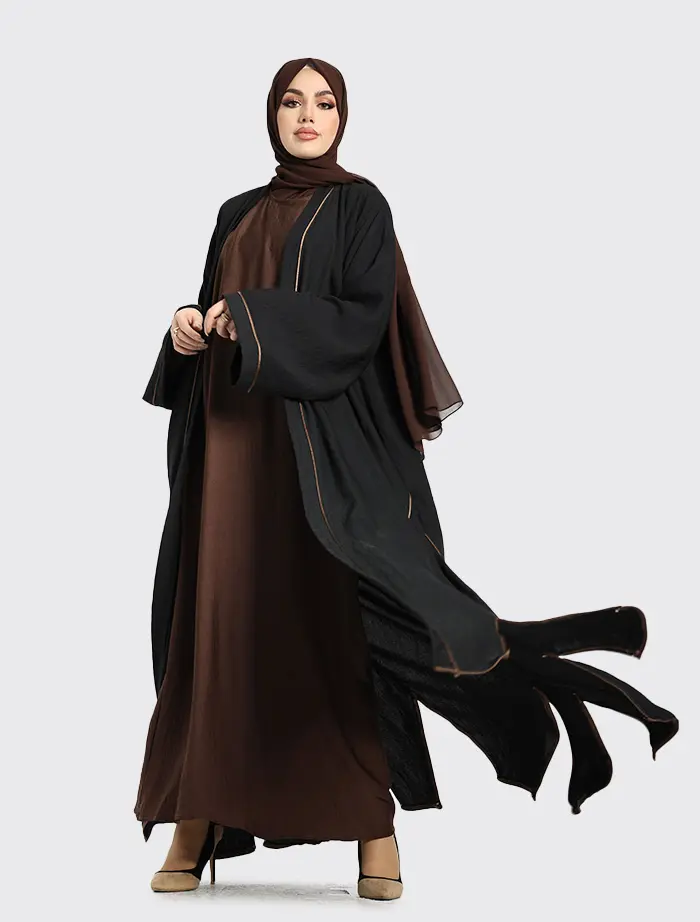 A style in which the Linen look fabric perfectly complements the inner slip (slip included). Piping detail on the outer garment is matched to go with the inner slip colour.