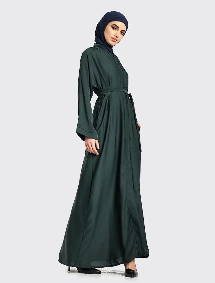 Featuring a V neckline with a full button front opening. This abaya although simple will meet your expectations for your everyday comfort. This dress features an A-line cut flare.