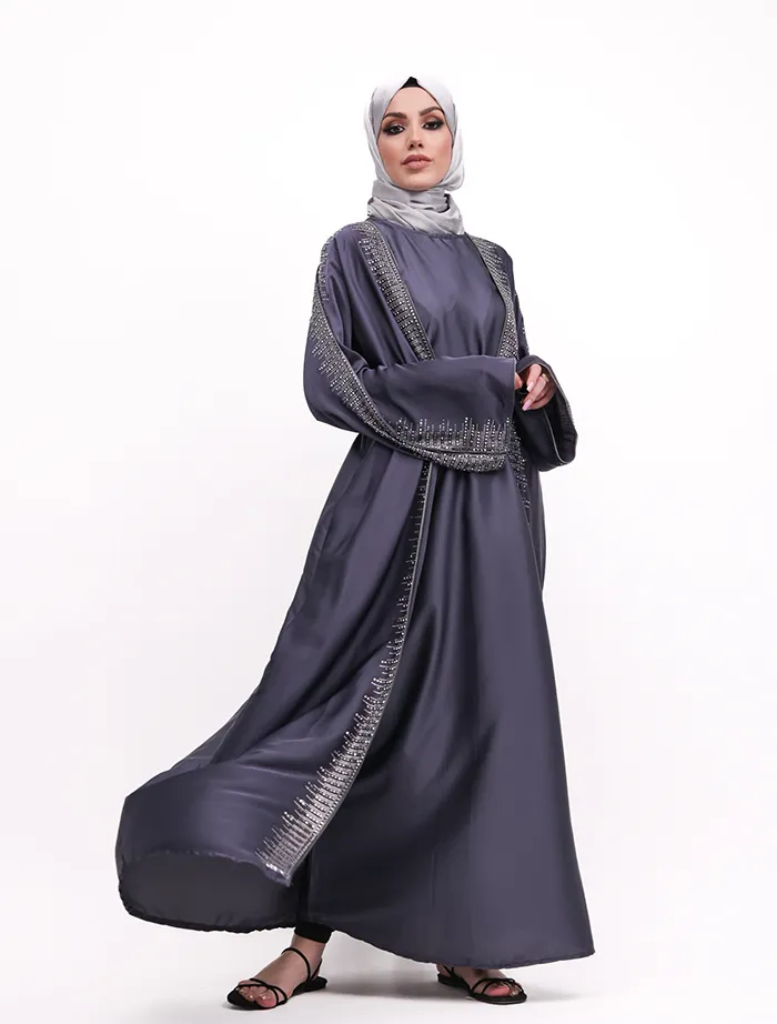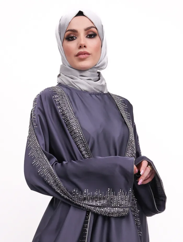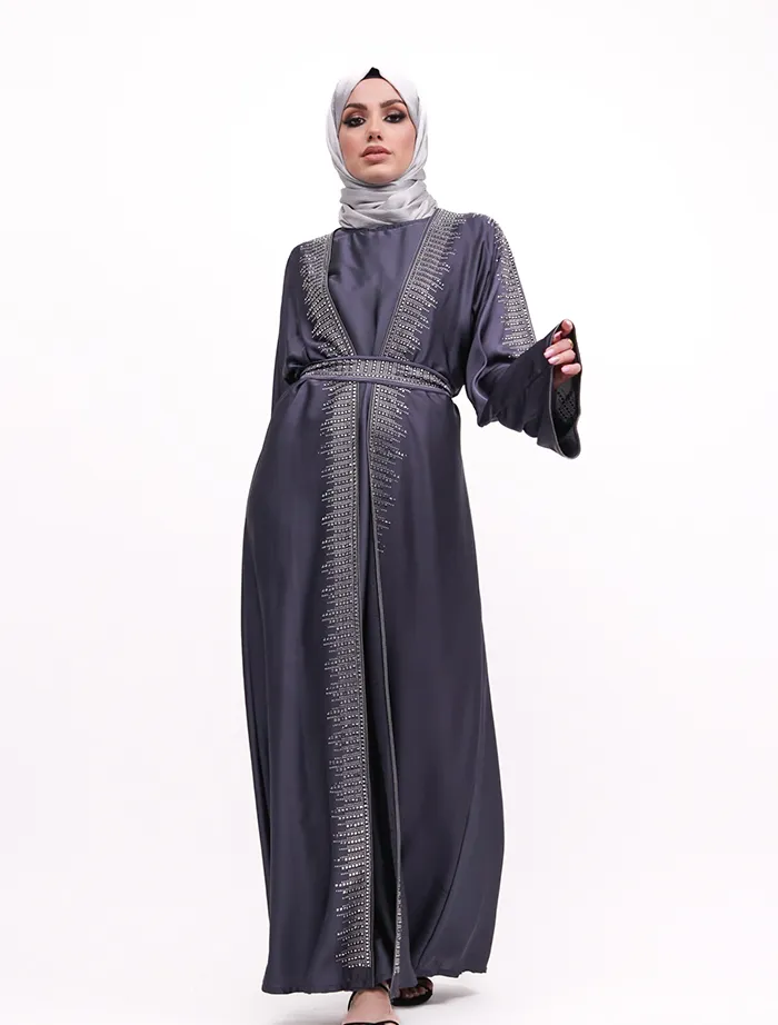 This 2-piece set exudes elegance with its understated design, ensuring you'll stand out in any room. It includes a short sleeve slip layered under a simple kimono, enhanced by the fabric's satin shine. A separate belt is provided for a more structured look, or you can opt for a casual style without it.