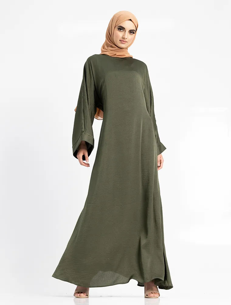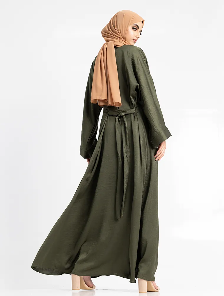 Featuring a round neckline, this abaya although simple will meet your expectations for your everyday comfort. This abaya features a loose cut fitting and has a detachable belt for a more structured look.