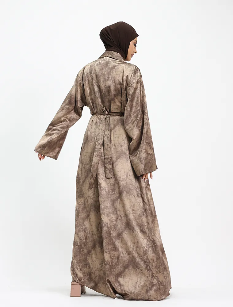 The Hana Printed Satin Kimono is designed to bring effortless elegance to your everyday wardrobe. Crafted from a smooth, lightweight satin fabric, it drapes beautifully for a refined yet comfortable look. The kimono comes with a matching belt, allowing you to cinch the waist for a more structured and flattering fit, or wear it open for a relaxed, flowy silhouette.