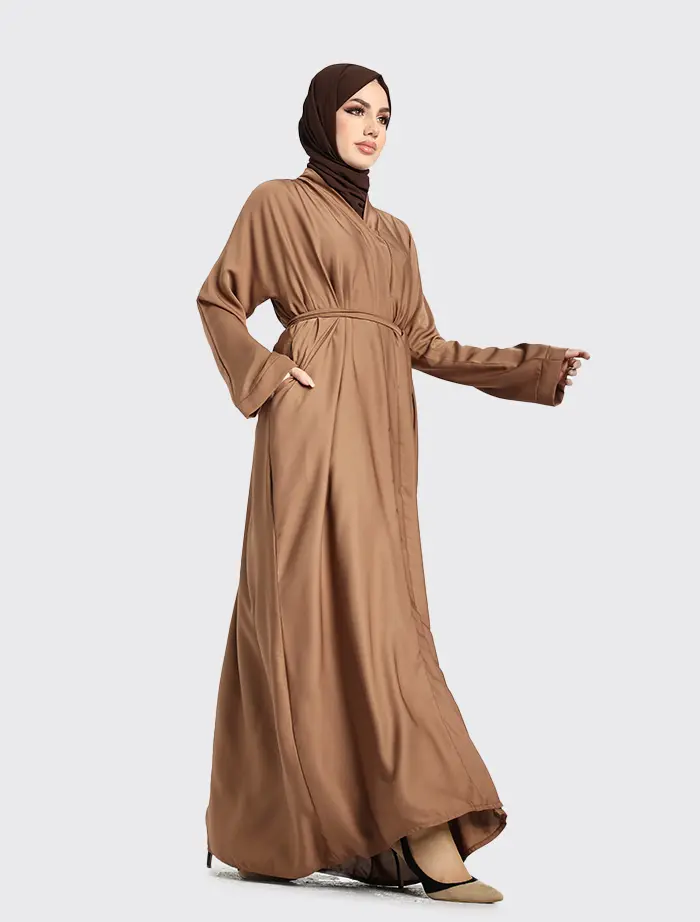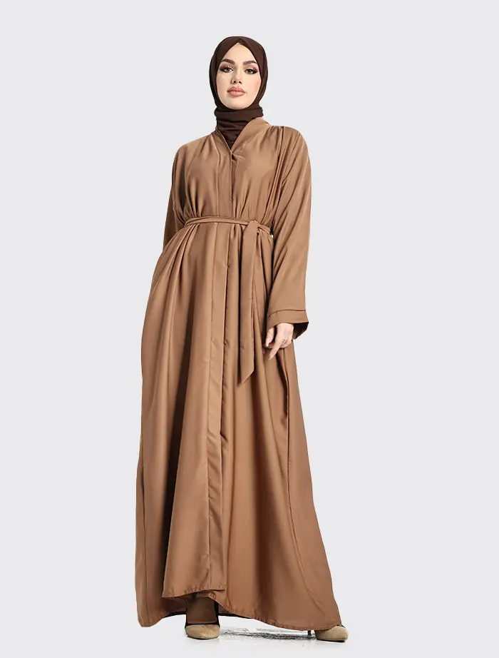 Featuring a V neckline with a full button front opening. This abaya although simple will meet your expectations for your everyday comfort. This dress features an A-line cut flare.