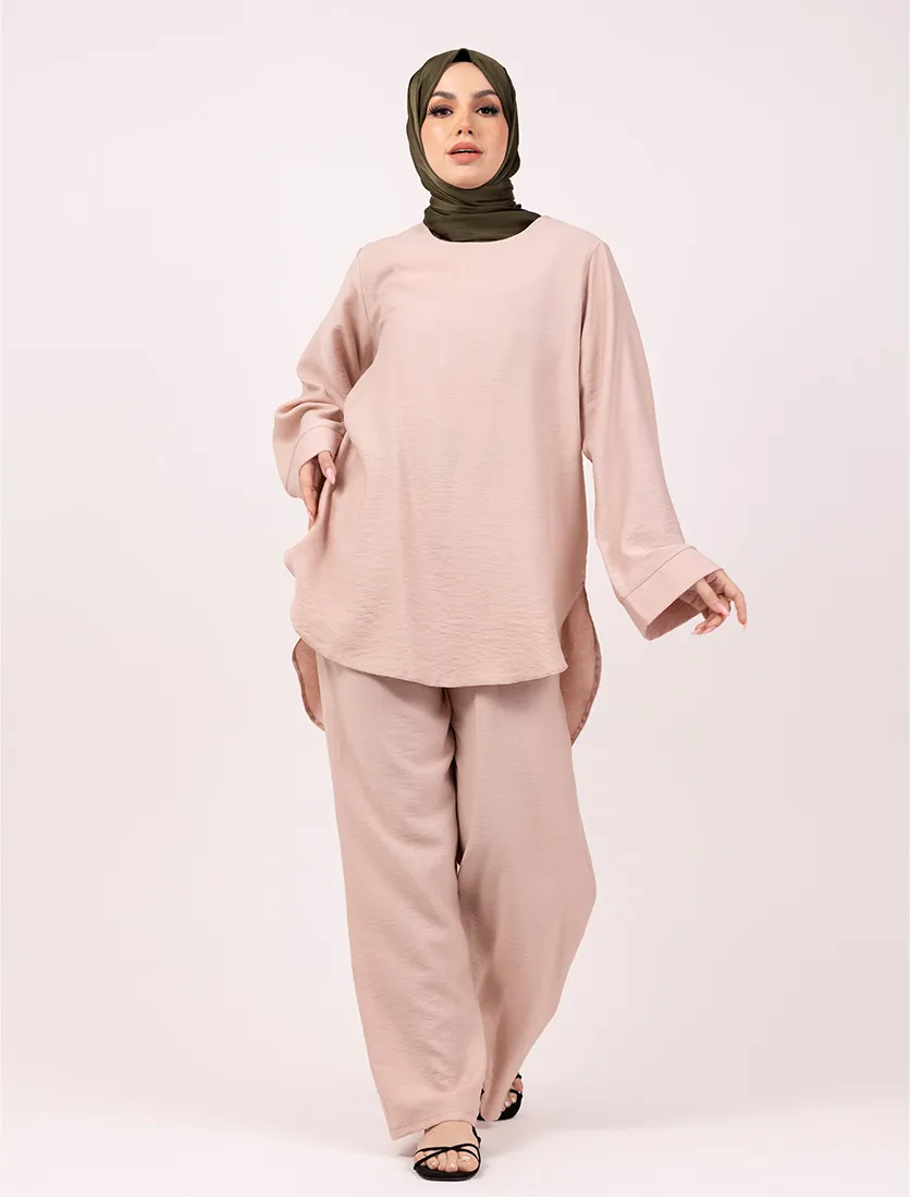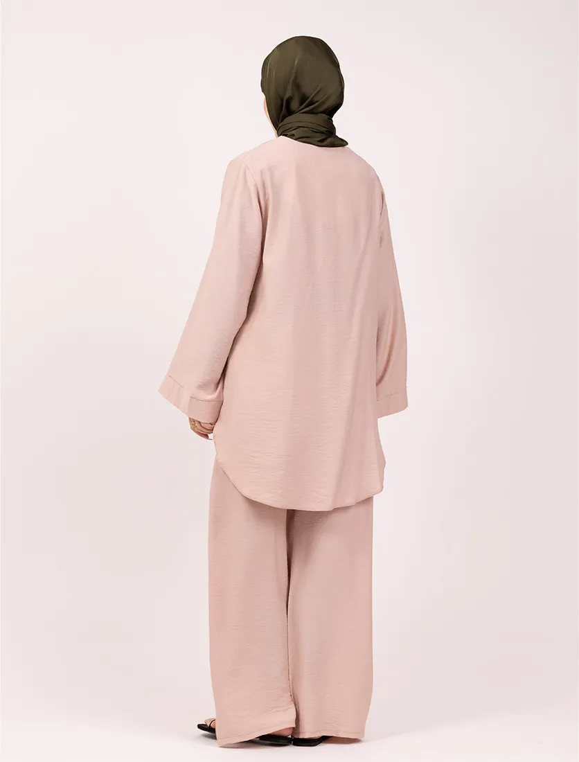 Relaxed yet refined, this two-piece co-ord set is your go-to for effortless everyday dressing. Designed with a soft textured fabric and a flattering wide-leg silhouette, it offers comfort without compromising on style.