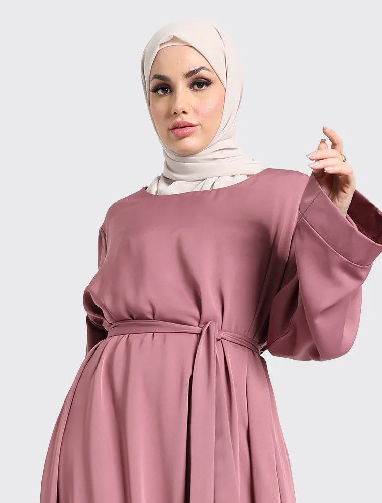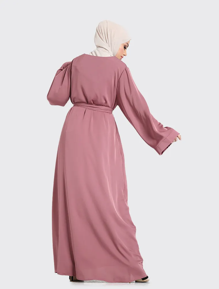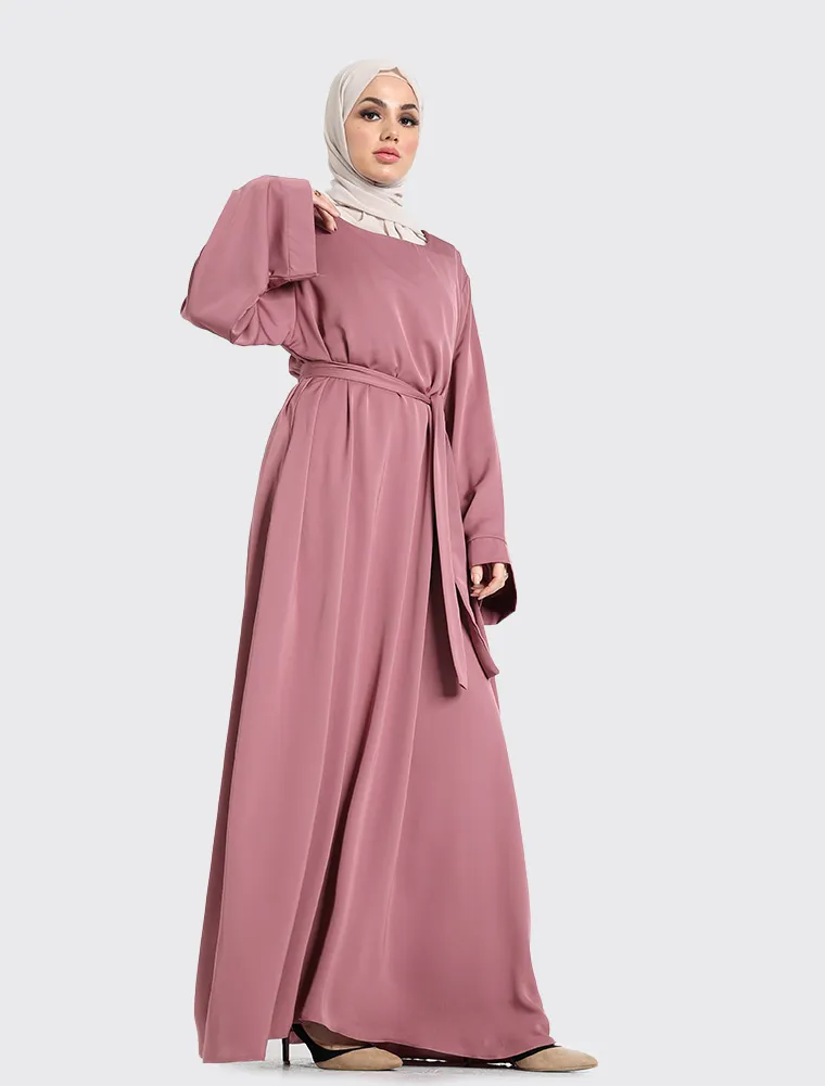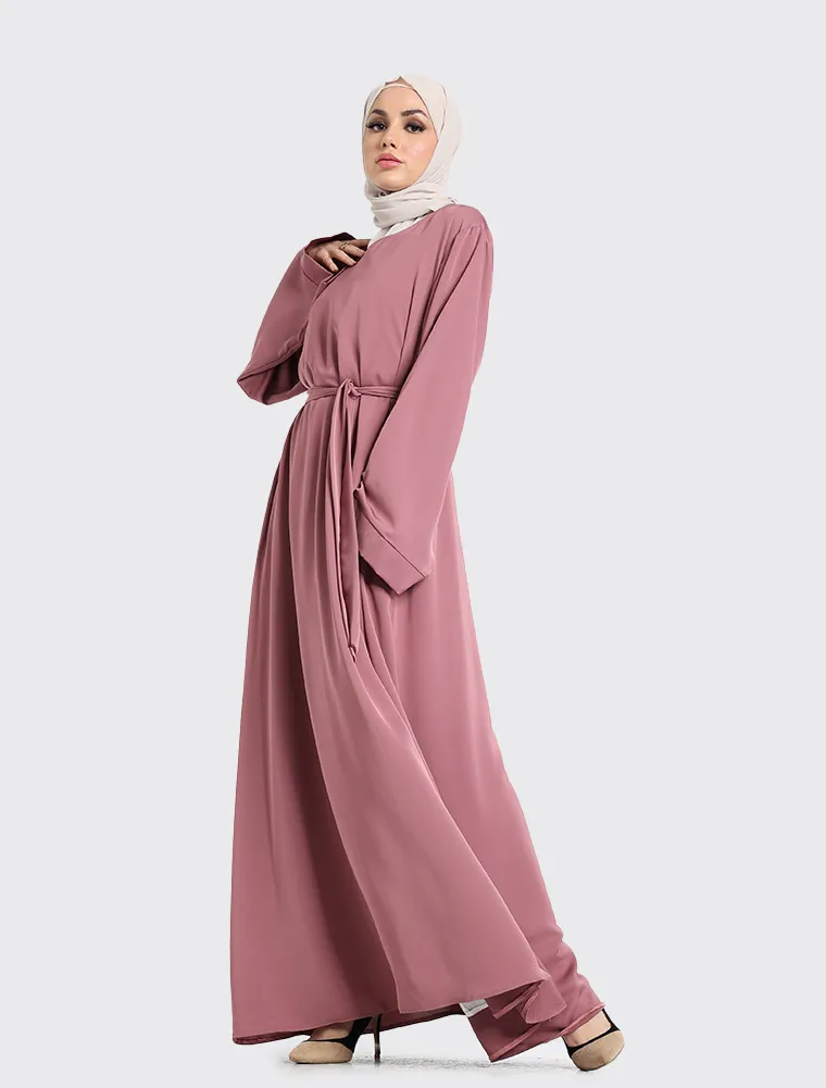 This abaya focuses on effortless simplicity while giving you the comfort you need every day. It features an A-line cut with a flared hem and practical side pockets for your essentials. A separate belt is included if you prefer a more structured look, or you can wear it without for a relaxed, casual style.