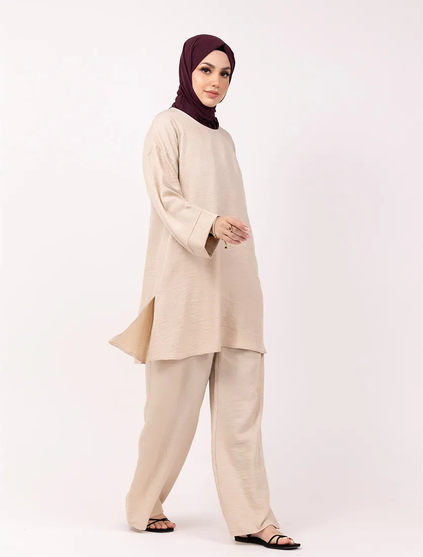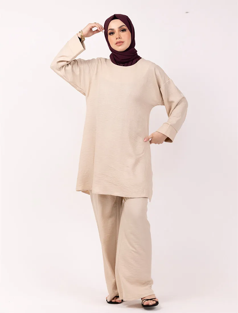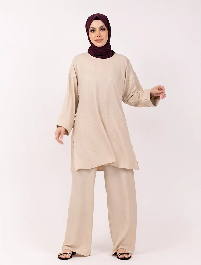 Designed for modesty and ease, this set is perfect for workdays, casual outings, or layering under abayas and jackets. The soft, breathable material ensures all-day comfort while maintaining a polished appearance.