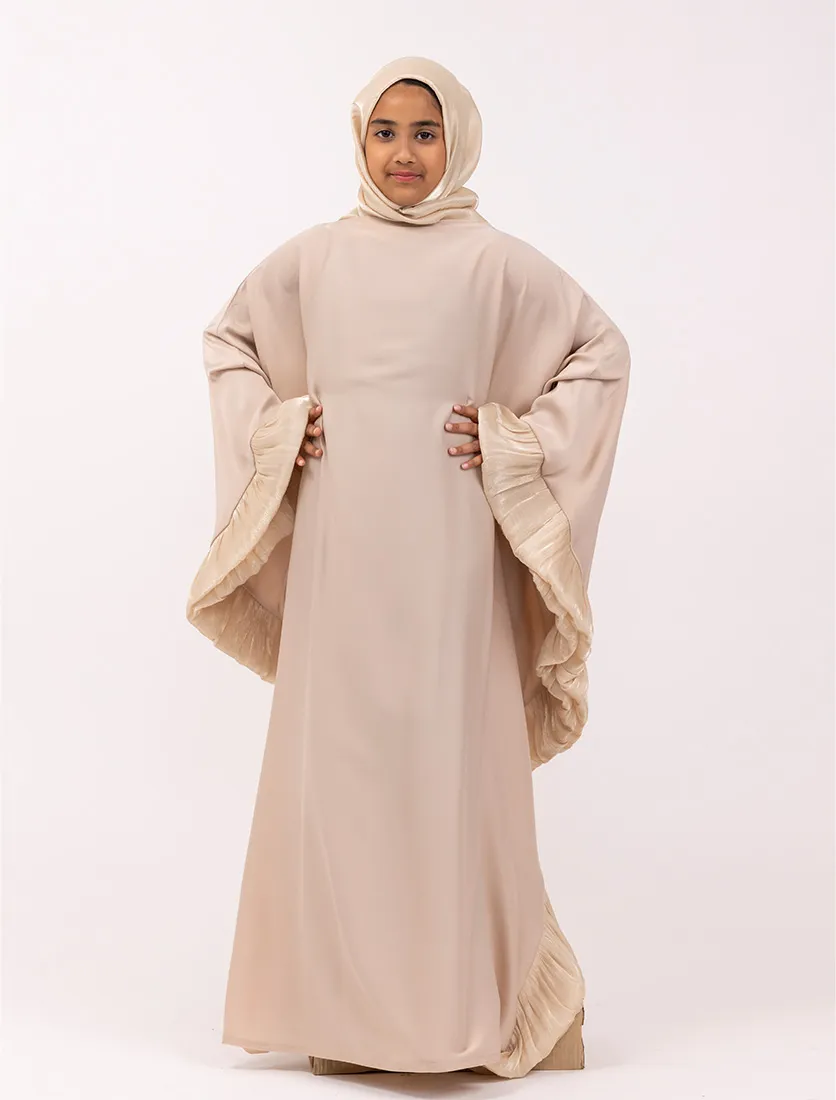 Blending elegance with modern modesty, this kaftan-style abaya features fluid lines and statement pleated accents for a look that’s both striking and effortless. A hidden inner belt at the waist allows you to customize the fit to your liking—cinched for shape or loose for a relaxed silhouette.