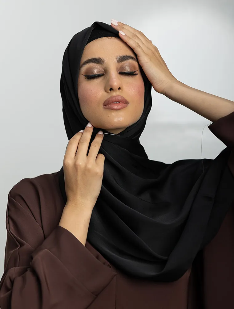 Grain Satin Hijab made from 100% Polyester has a mild bubble texture. This helps the hijab to stay firmly on when worn.