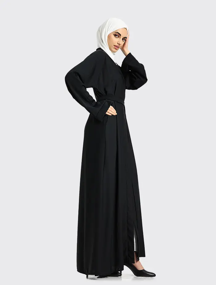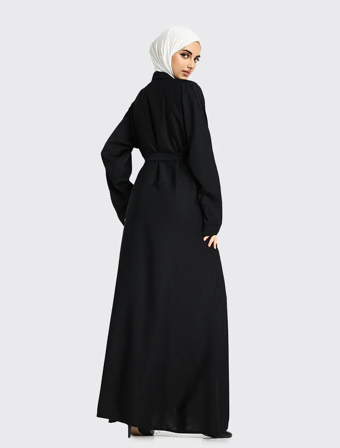 Featuring a V neckline with a full button front opening. This abaya although simple will meet your expectations for your everyday comfort. This dress features an A-line cut flare.
