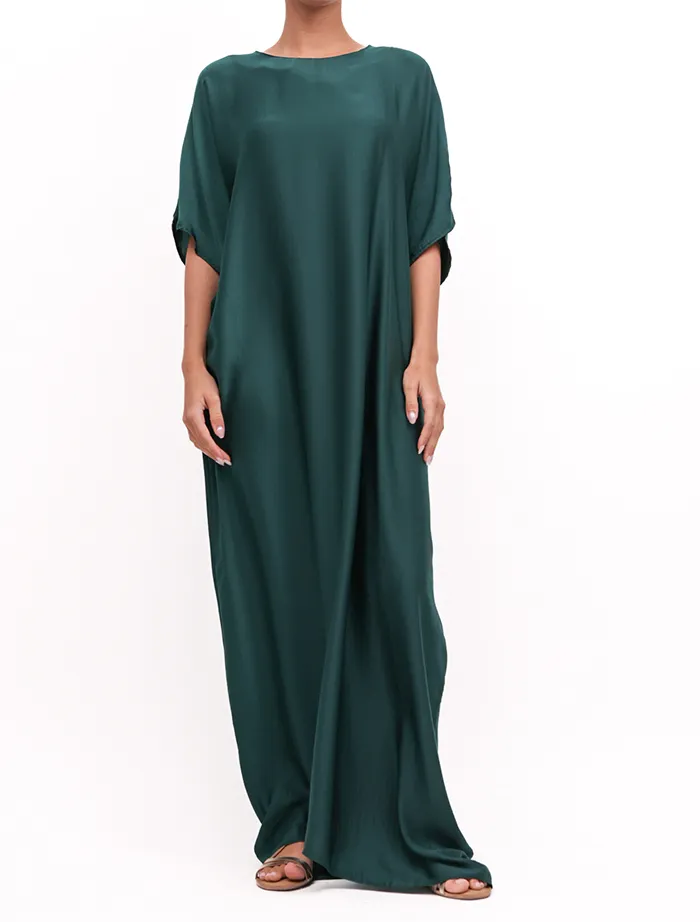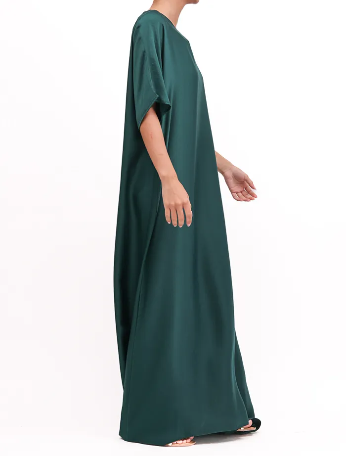 A perfect necessity to wear beneath your abaya and kimonos to give you a more streamlined look as well as reduce any bulk. The silk textured fabric compliments any over piece. Simply slip this on and feel more secure.