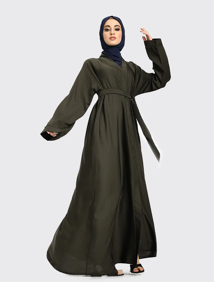 Featuring a V neckline with a full button front opening. This abaya although simple will meet your expectations for your everyday comfort. This dress features an A-line cut flare.