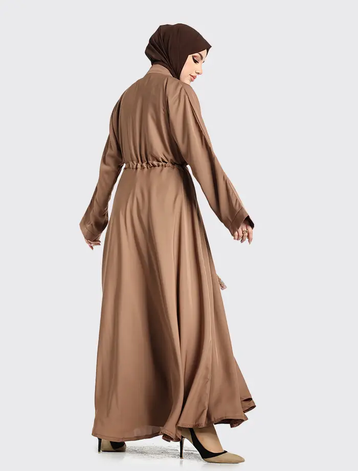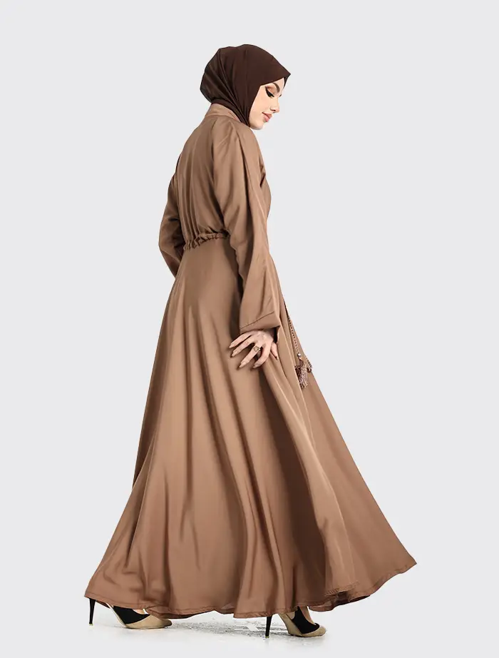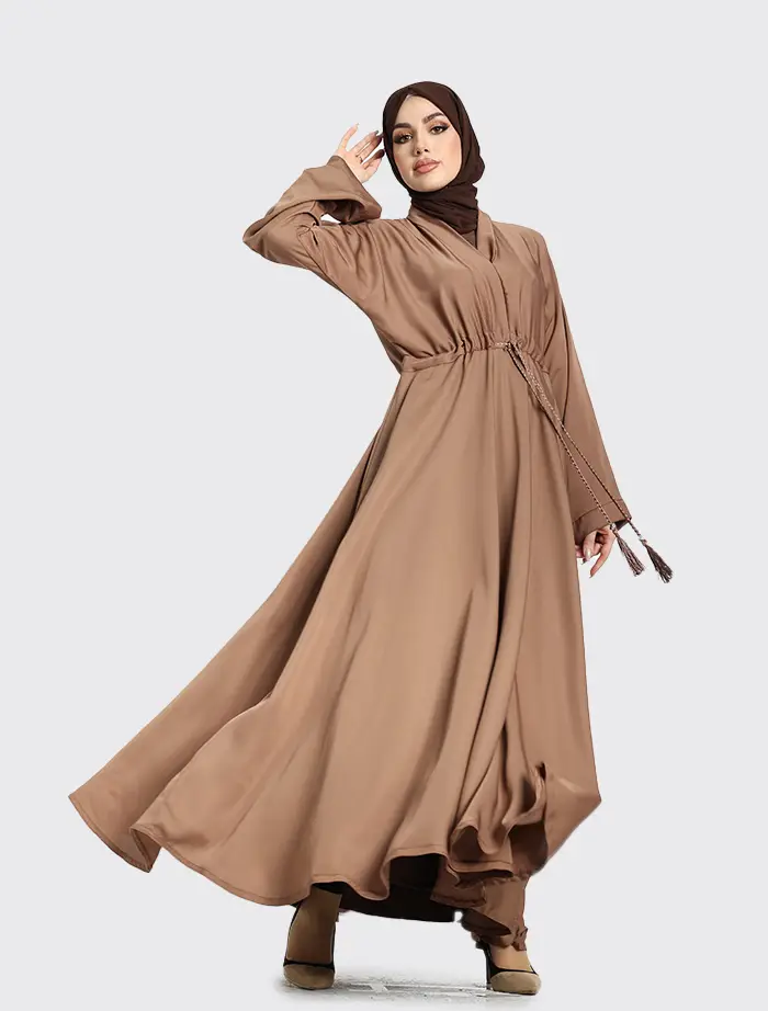 The style features a V-neckline and a draw cord on the waistline to achieve a more structured fit⋅ The Nida fabric compliments the full flare cut umbrella bottom⋅