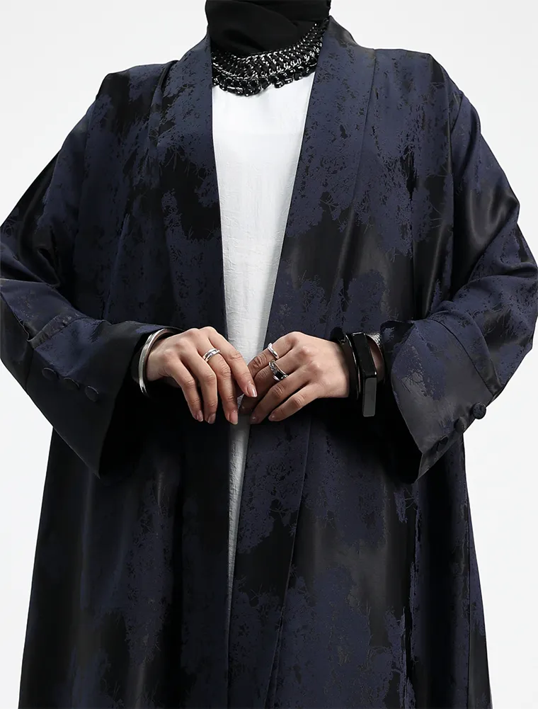 Crafted from a smooth, lightweight fabric with a soft sheen, this open abaya offers effortless elegance with a modern edge. Designed in a flowing silhouette, it drapes beautifully over the body, creating a refined and flattering look.