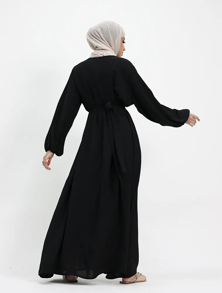 Black Linen Feel Essential Abaya