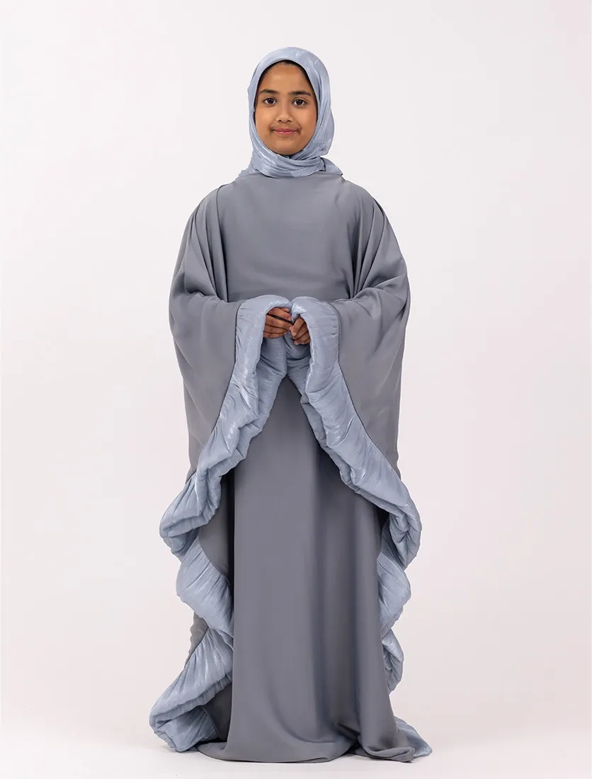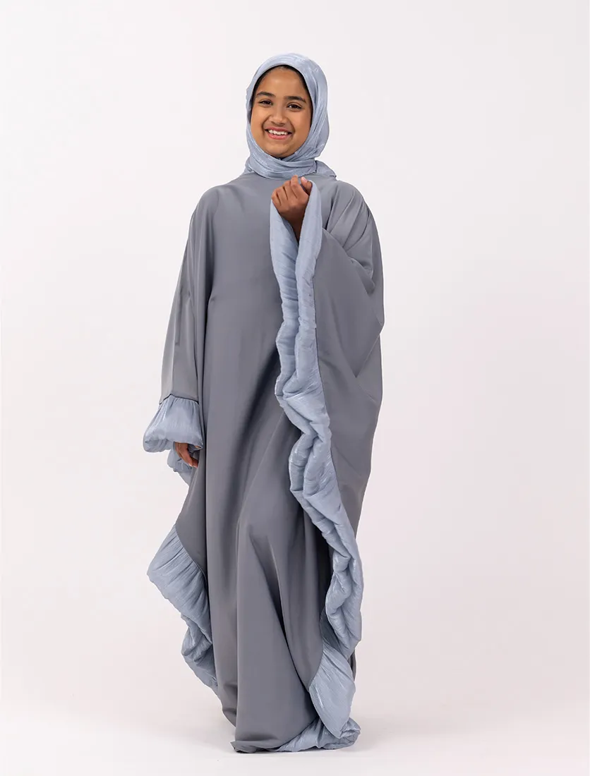 Organza Trim Kaftan Abaya – 2-Piece Set