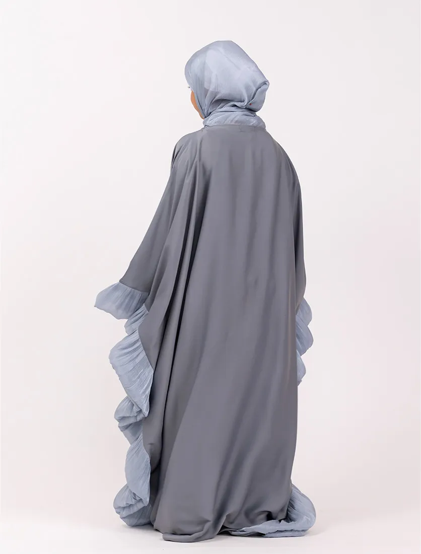 Blending elegance with modern modesty, this kaftan-style abaya features fluid lines and statement pleated accents for a look that’s both striking and effortless. A hidden inner belt at the waist allows you to customize the fit to your liking—cinched for shape or loose for a relaxed silhouette.