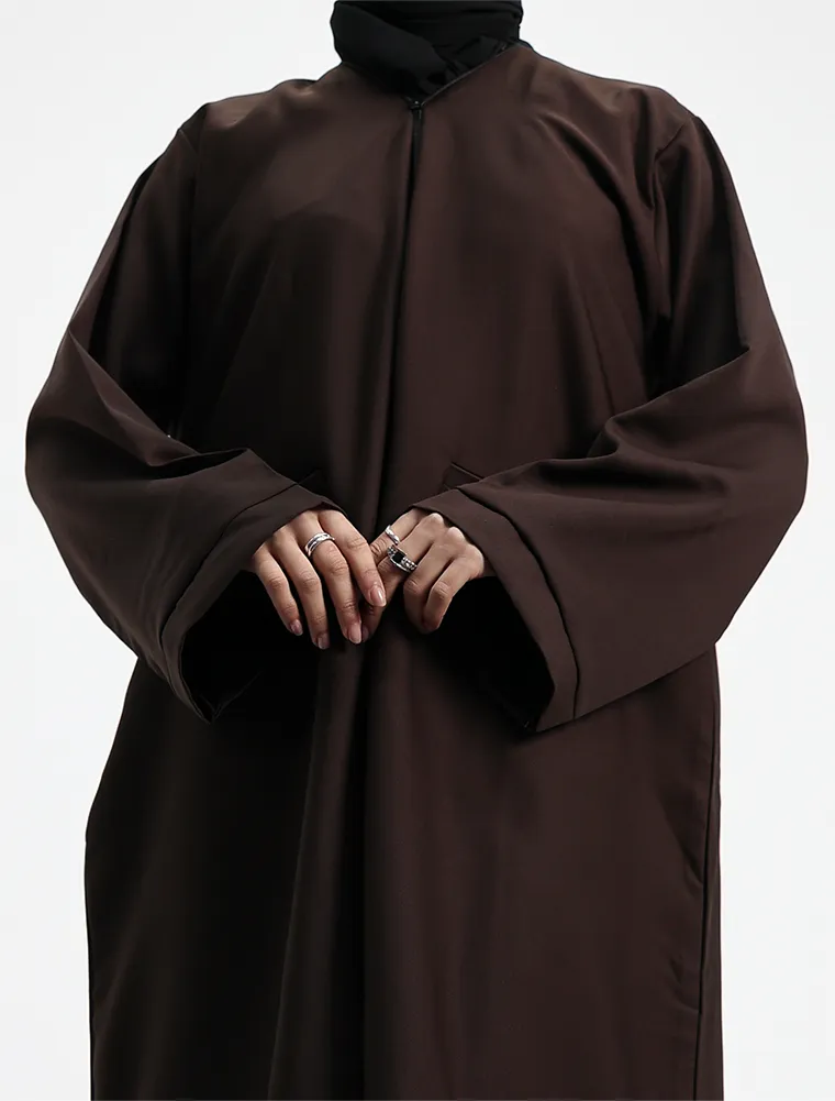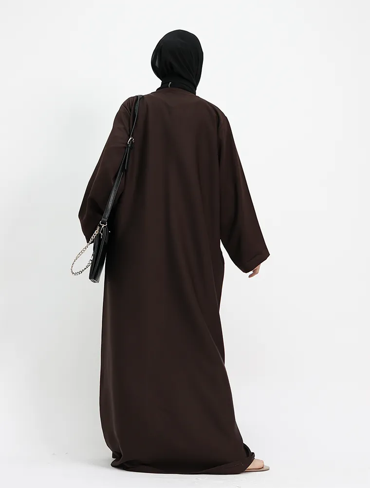 Brown Front Zip Open Abaya