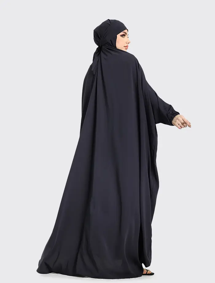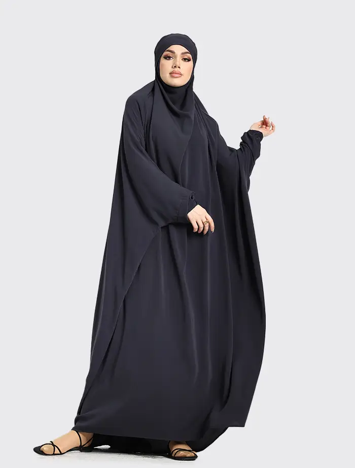 This full-length jilbab is designed with a hidden chin and a tie-back headband. The sleeves feature elasticated cuffs, making it easier to perform wudhu.