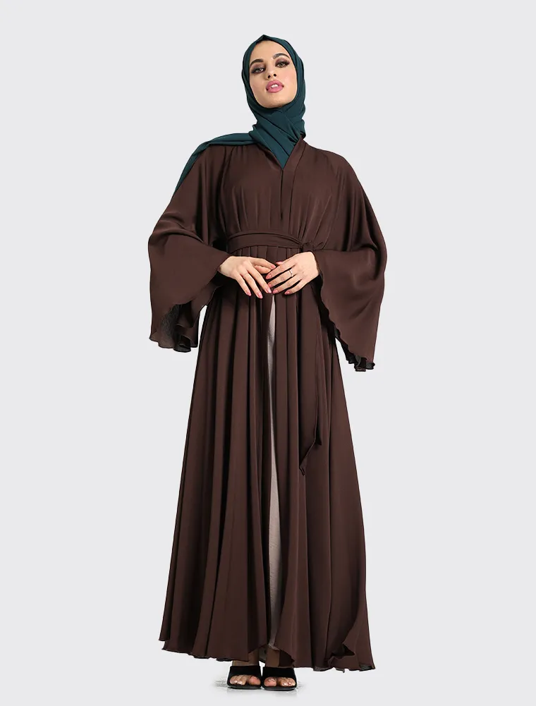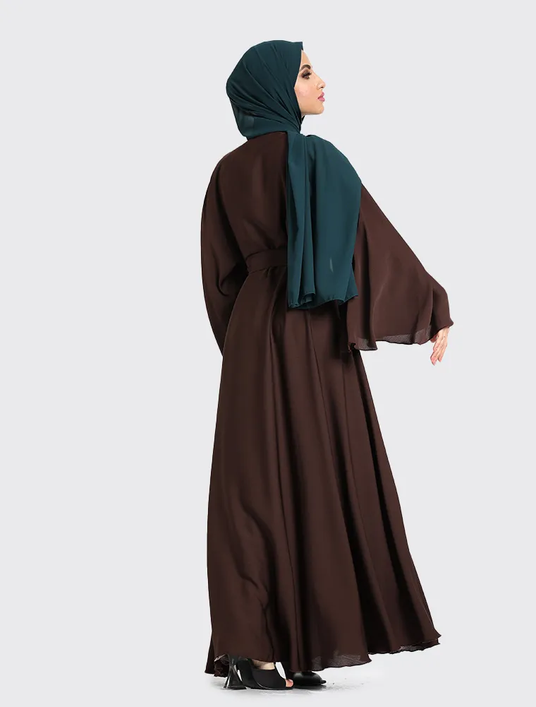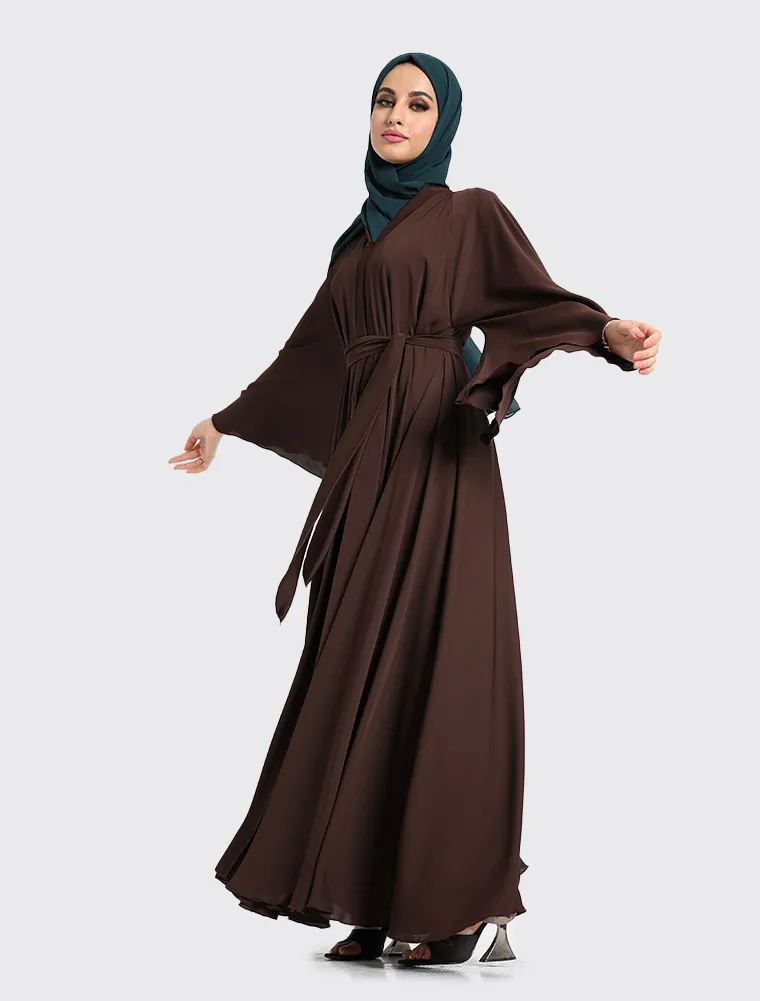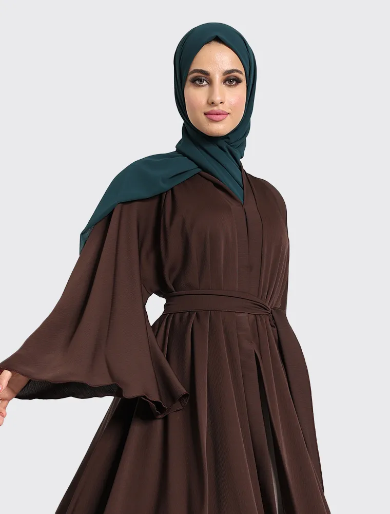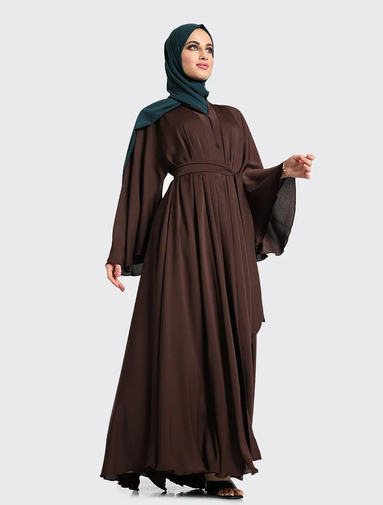The Nida Crinkle fabric compliments the full flare cut umbrella styling. Other detailing includes flared sleeves, V-neckline and hidden press buttons running down the front.