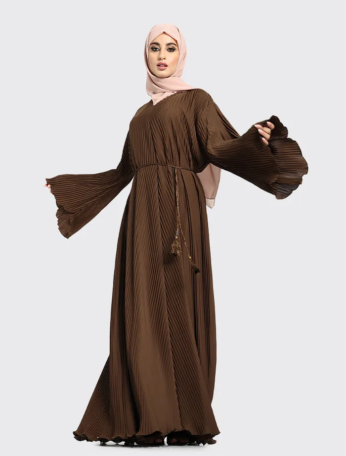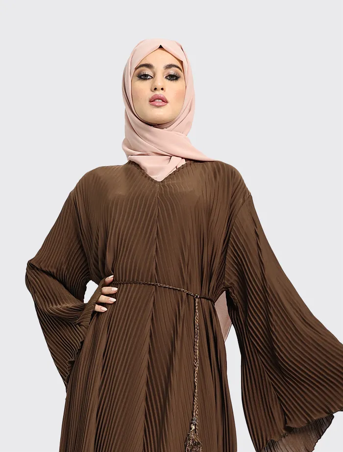 An abaya which has been beautifully cut in a A line shape. This basic piece is ideal to wear with any kimono. This abaya is perfect for wash and wear and requires minimal maintenance. A must have to your wardrobe for everyday wear⋅ A detachable rope belt is attached to give it a more fitting look.