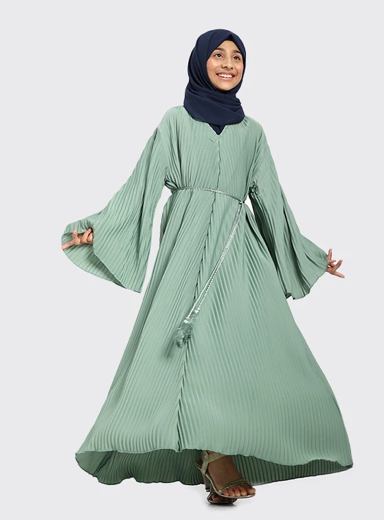 This elegantly tailored A-line abaya offers a flattering silhouette that can be worn effortlessly on its own or paired with any kimono. Designed for convenience, it's perfect for wash-and-wear use and requires minimal upkeep. A detachable rope belt is included, allowing you to cinch the waist for a more defined fit. A versatile wardrobe essential, ideal for everyday wear.