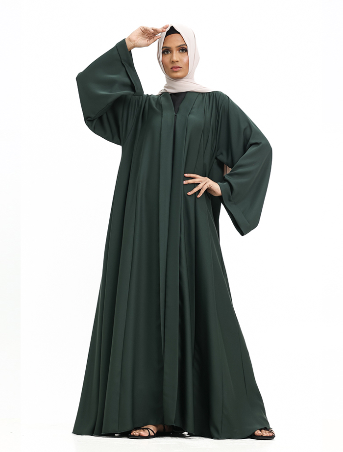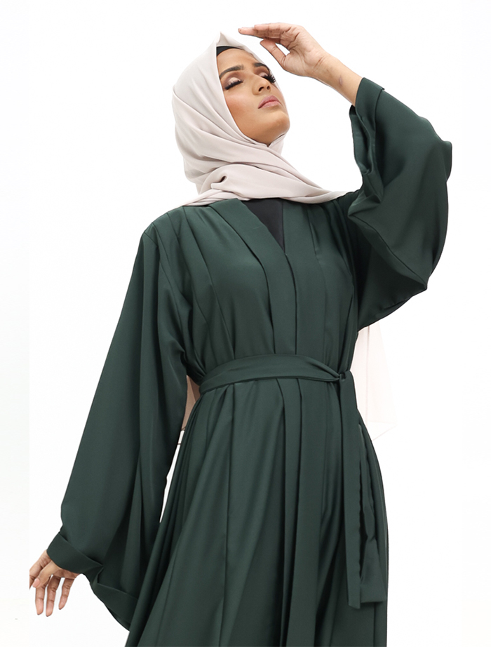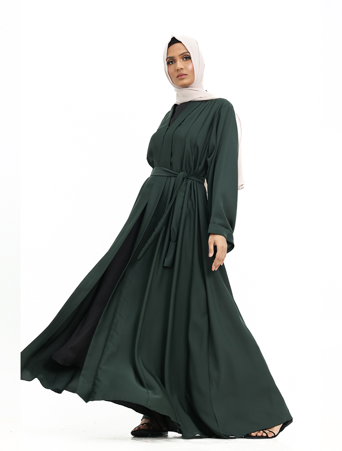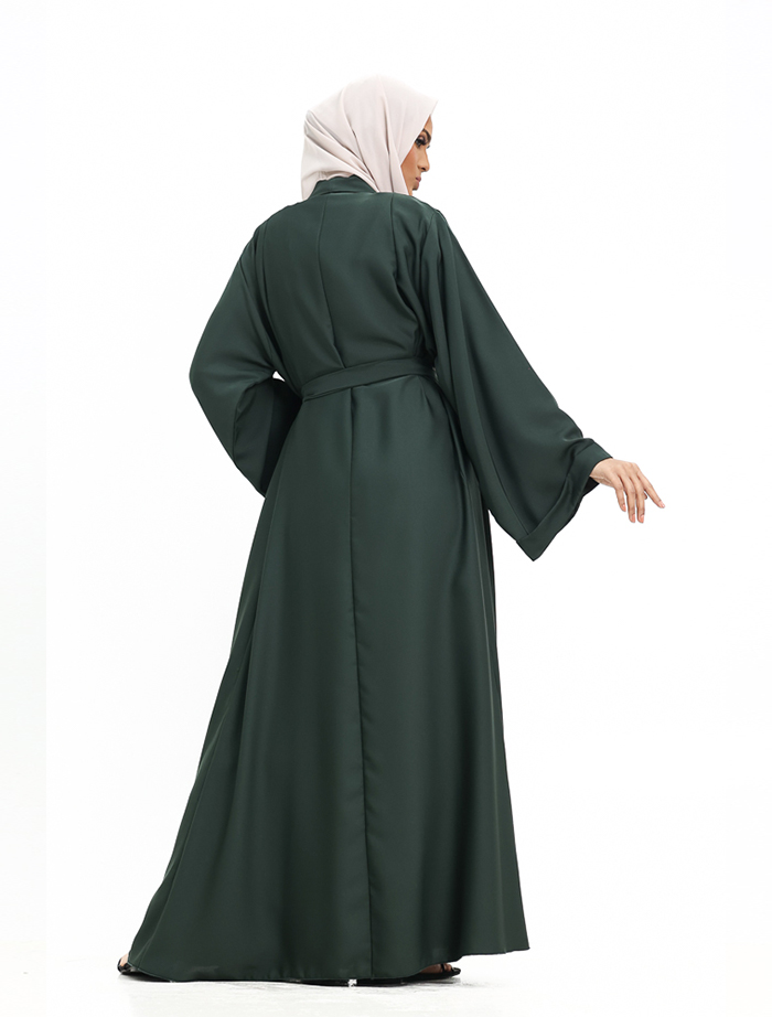 Indulge in this simplistic open abaya with panels front and back on a luxuriously nida fabric. The classic sleeve adds a timeless touch, perfect for dressing up for any occasion or dressing down for a casual day out or on holiday. Other detailing's include one press button at the top and a optional belt to create a more structured look.