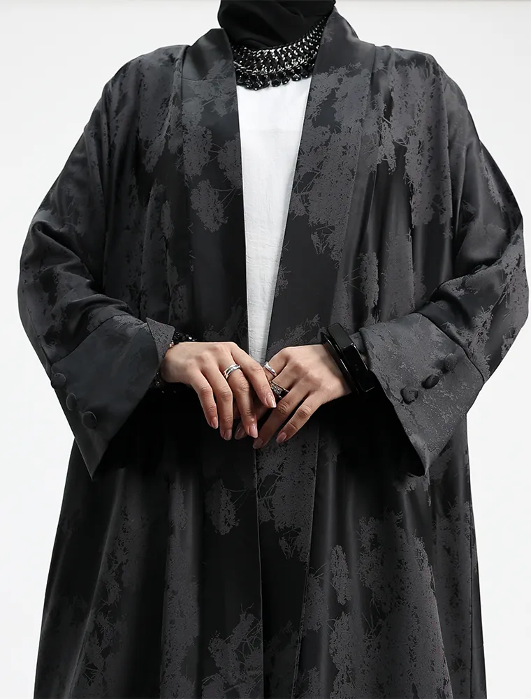 Crafted from a smooth, lightweight fabric with a soft sheen, this open abaya offers effortless elegance with a modern edge. Designed in a flowing silhouette, it drapes beautifully over the body, creating a refined and flattering look.