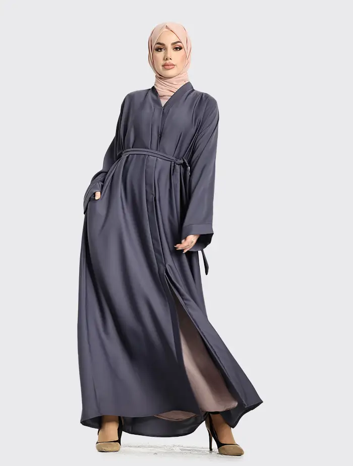 Featuring a V neckline with a full button front opening. This abaya although simple will meet your expectations for your everyday comfort. This dress features an A-line cut flare.