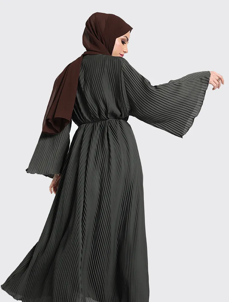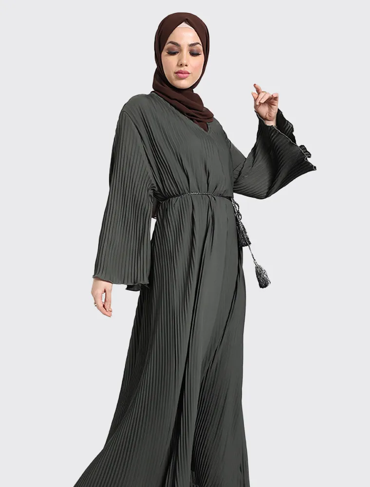 An abaya which has been beautifully cut in a A line shape. This basic piece is ideal to wear with any kimono. This abaya is perfect for wash and wear and requires minimal maintenance. A must have to your wardrobe for everyday wear⋅ A detachable rope belt is attached to give it a more fitting look.