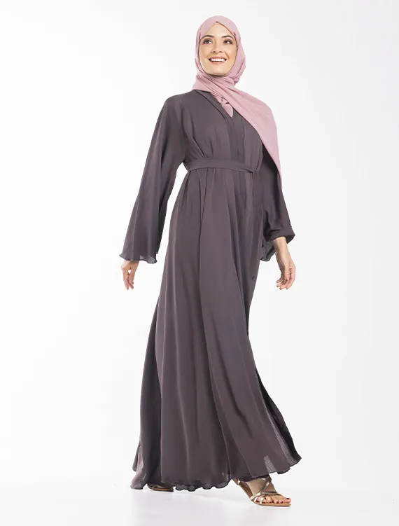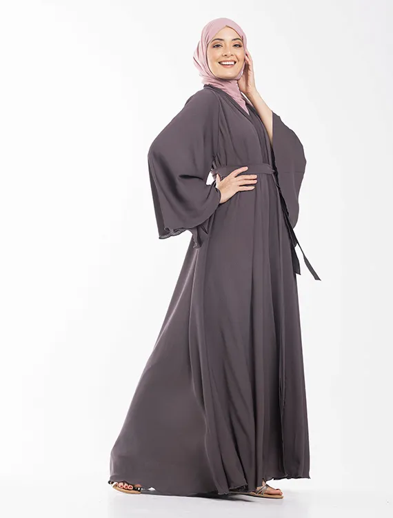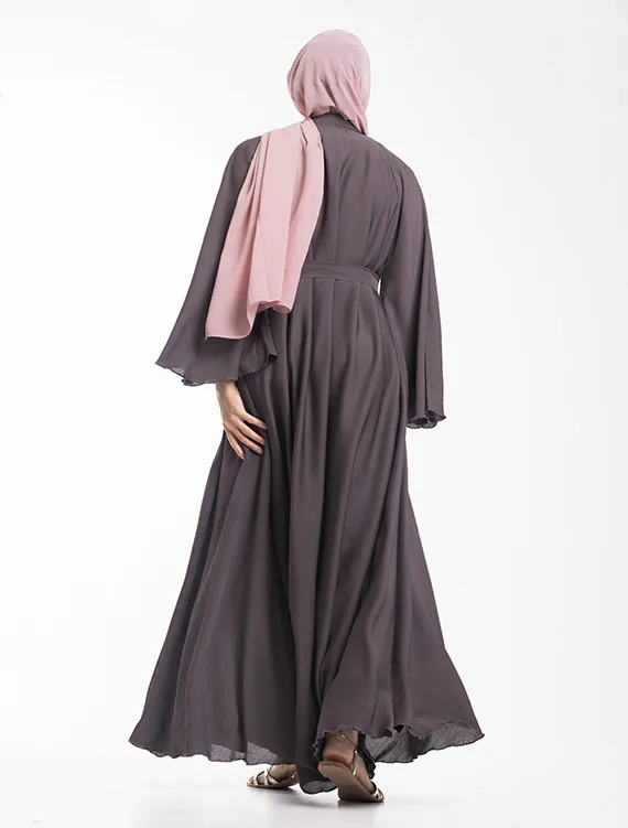 The Nida Crinkle fabric compliments the full flare cut umbrella styling. Other detailing includes flared sleeves, V-neckline and hidden press buttons running down the front.