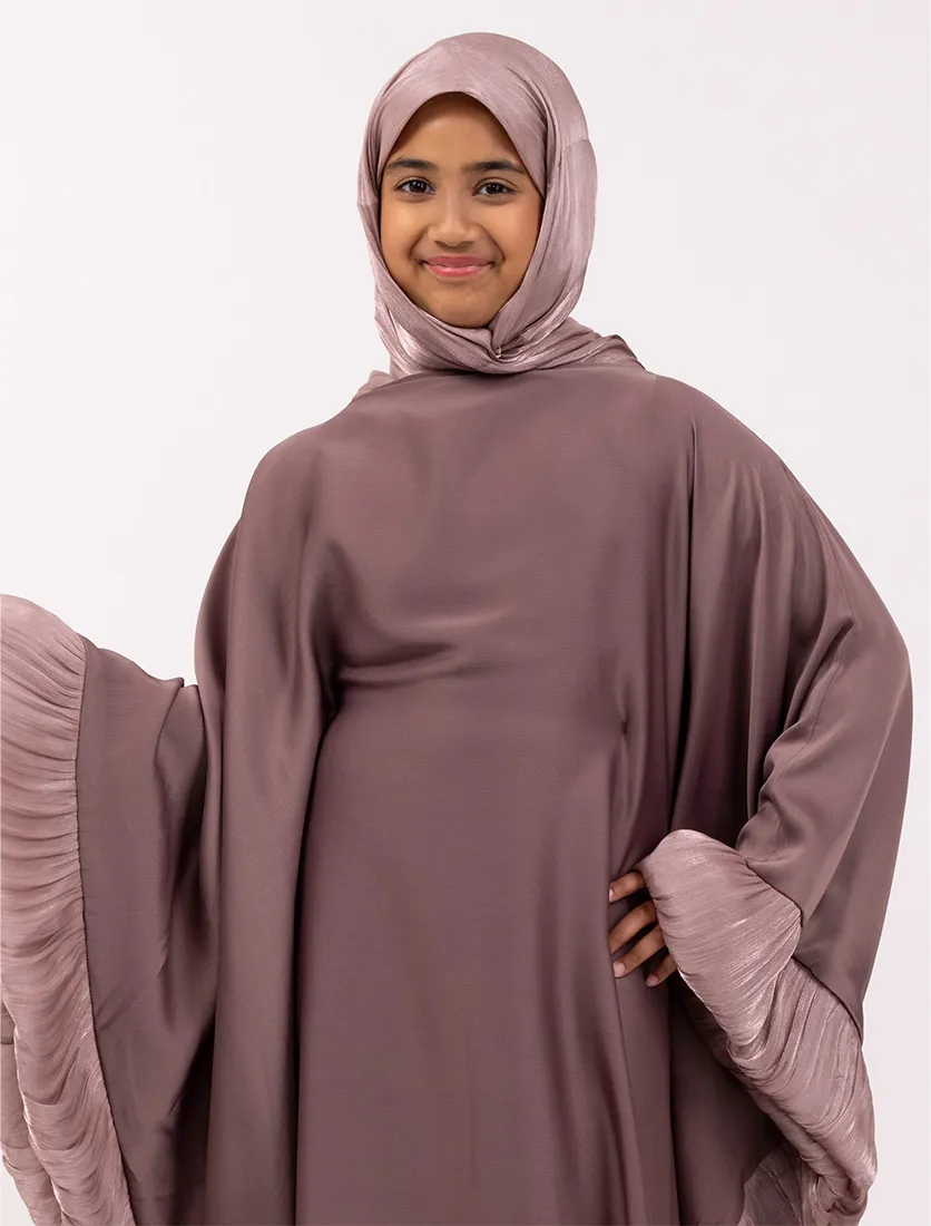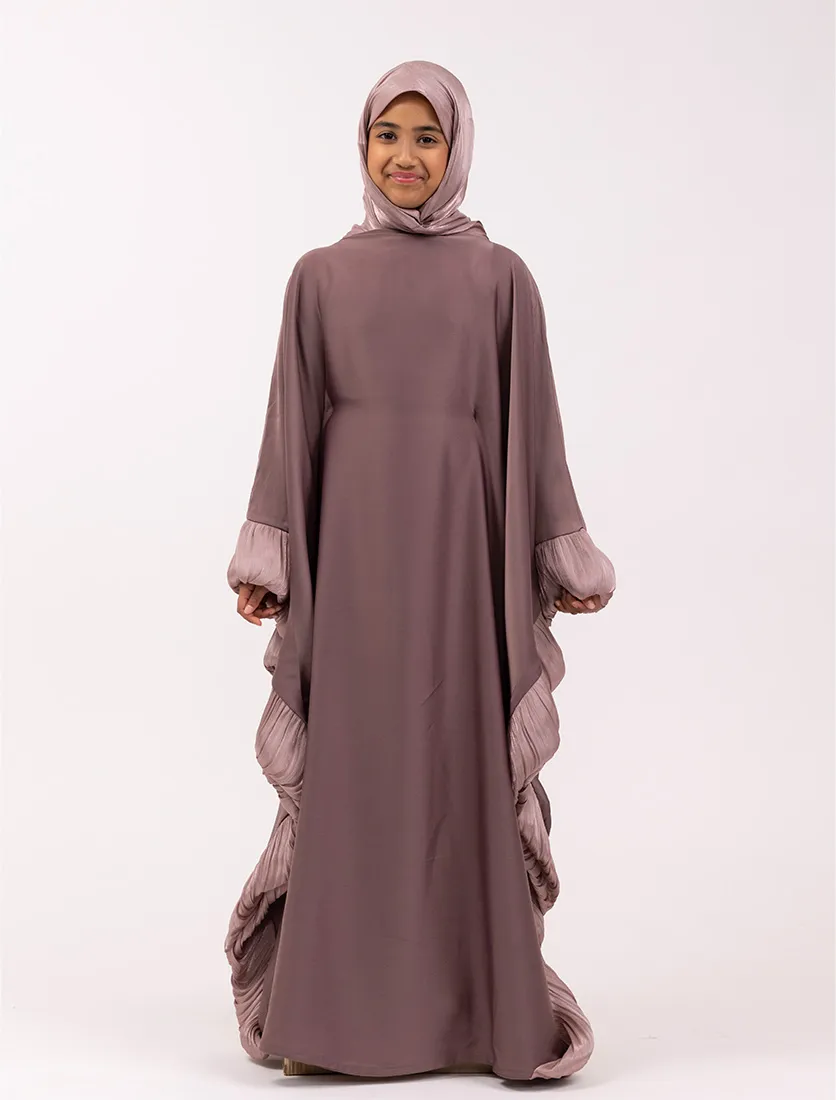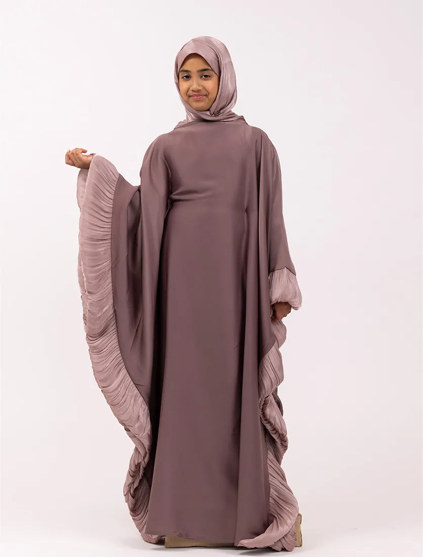 Blending elegance with modern modesty, this kaftan-style abaya features fluid lines and statement pleated accents for a look that’s both striking and effortless. A hidden inner belt at the waist allows you to customize the fit to your liking—cinched for shape or loose for a relaxed silhouette.