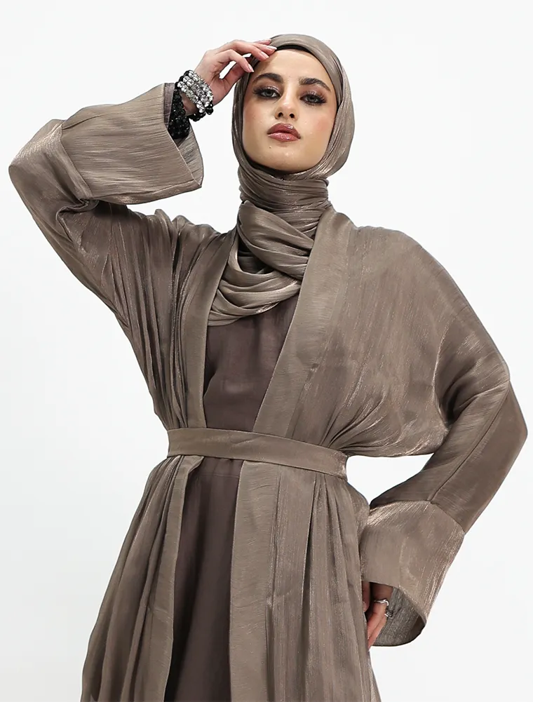 This elegant 2-piece set embodies effortless minimalism while offering all-day comfort. It features a full-sleeve slip dress, beautifully layered beneath a lightweight organza kimono for a refined finish. Designed with practicality in mind, the slip includes functional side pockets on both sides for everyday essentials. A separate matching belt is included, allowing you to style the set cinched for a structured silhouette or worn loose for a relaxed, casual look—perfect for versatile, everyday wear.