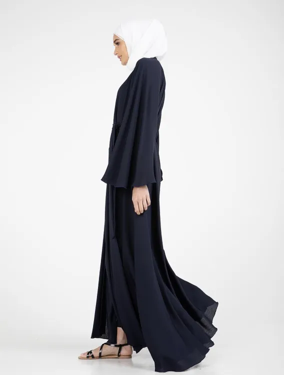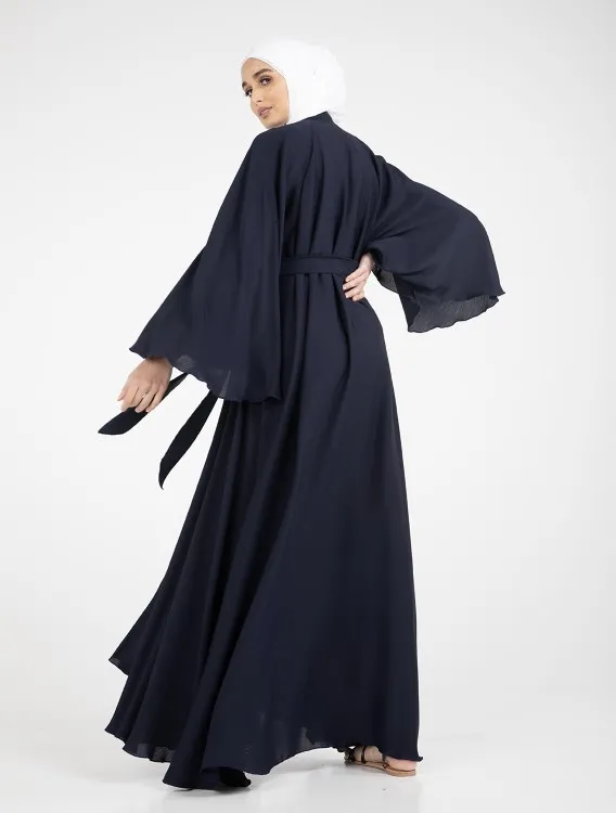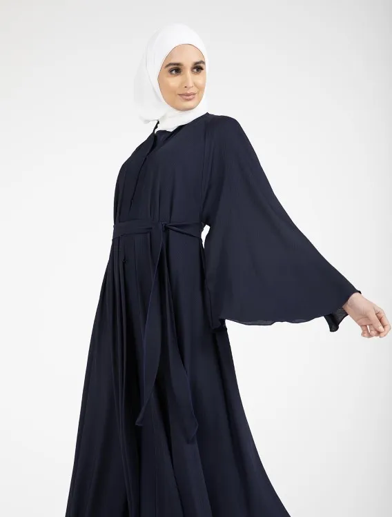 The Nida Crinkle fabric compliments the full flare cut umbrella styling. Other detailing includes flared sleeves, V-neckline and hidden press buttons running down the front.