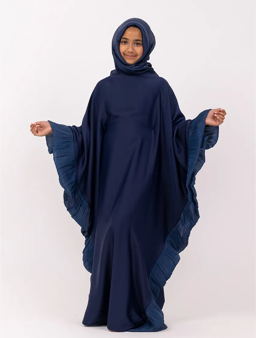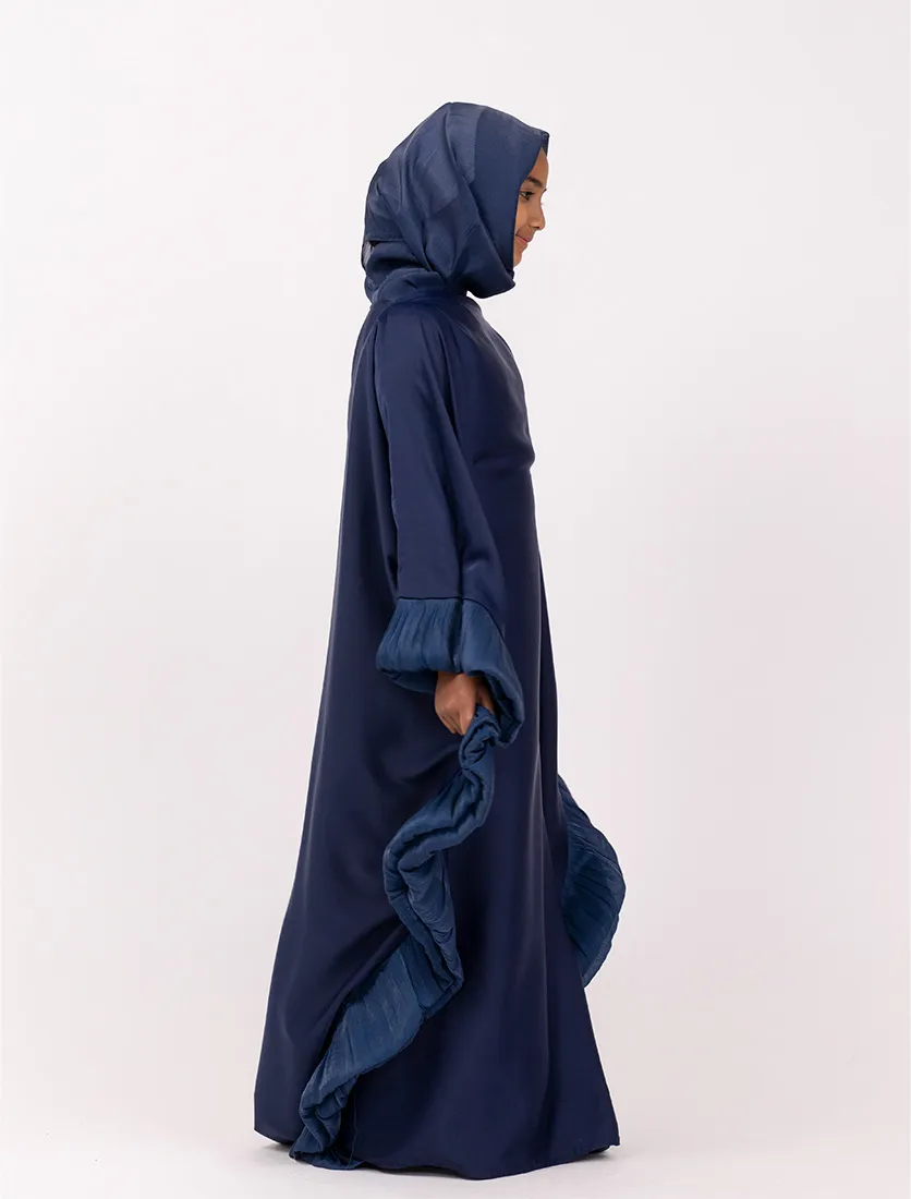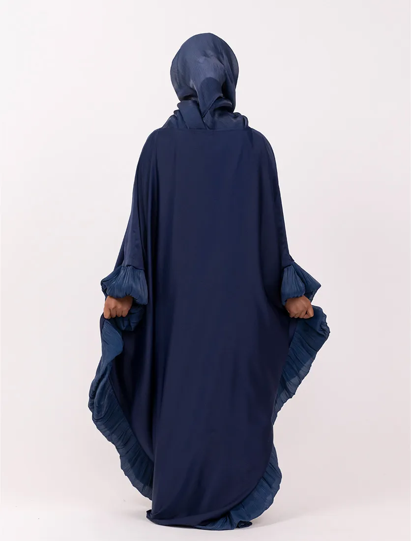 Blending elegance with modern modesty, this kaftan-style abaya features fluid lines and statement pleated accents for a look that’s both striking and effortless. A hidden inner belt at the waist allows you to customize the fit to your liking—cinched for shape or loose for a relaxed silhouette.