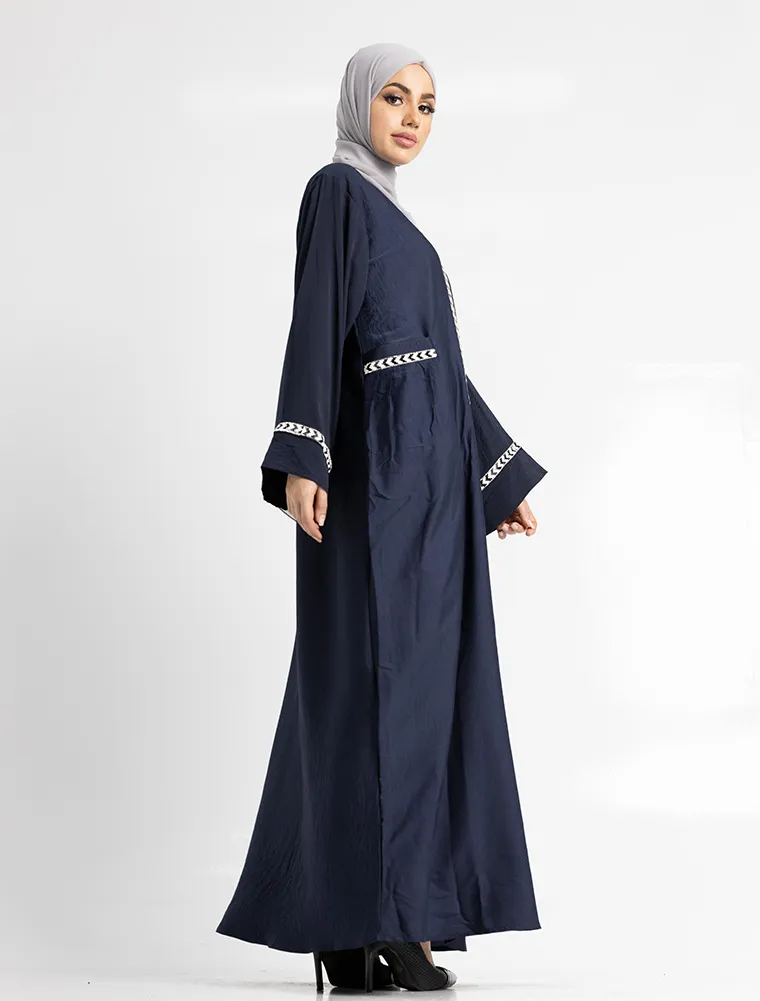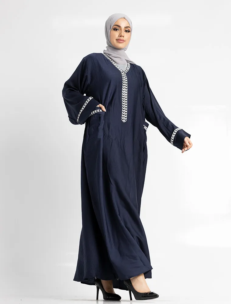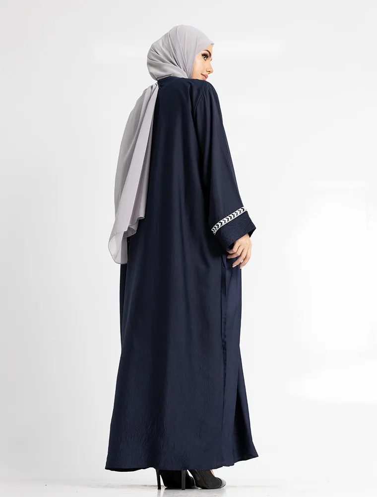 Crafted from a smooth, satin-feel fabric, this abaya drapes effortlessly to create an elegant yet comfortable silhouette. Designed with a relaxed fit for ease of movement, it features discreet front pockets for everyday practicality without compromising on style.