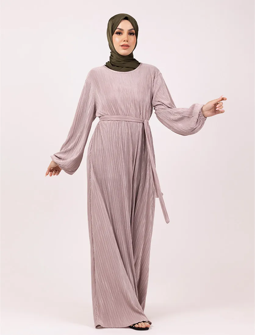 Step into timeless elegance with this beautifully designed black pleated abaya. Crafted from lightweight, flowy fabric with a crinkle texture, this abaya features: