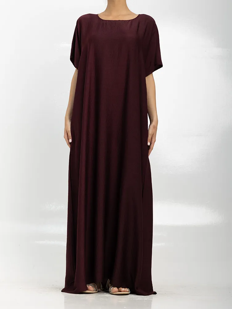 A perfect necessity to wear beneath your abaya and kimonos to give you a more streamlined look as well as reduce any bulk. The silk textured fabric compliments any over piece. Simply slip this on and feel more secure.